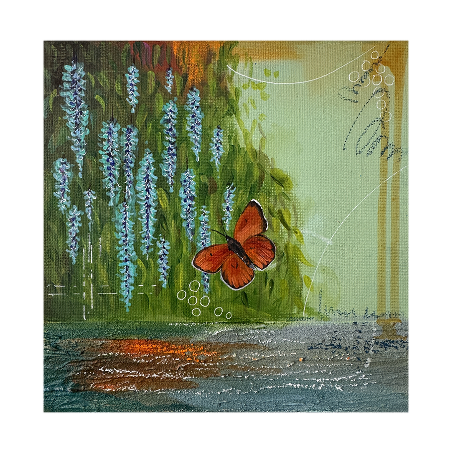 These paintings are a small tribute to butterflies and flowers, an attempt to breathe life even if it is only on canvas. These beautiful butterflies are all extinct or endangered species. Reason for most of them is loss of their original habitat. My painting is intended to remind us the urgent need to protect what remains. Flower: Strongylodon macrobotrys (Jade Vine) (Endangered). Butterfly: Lycaena dispar (British Large Copper) (Extinct in UK)